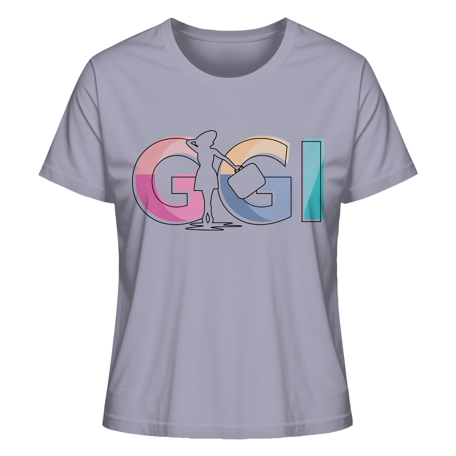 Exclusive lilac team tshirt with colour GGI logo available to celebraet the launch of the GGI HUb! This is quite a fitted tshirt, high quality and organic. Sizes are true to normal sizing. Go one size larger than normal if you prefer a bit looser.